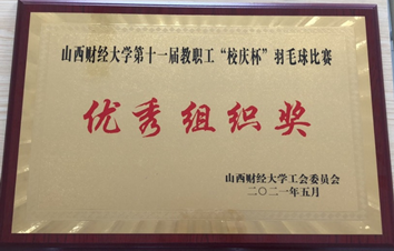2021年5月7日,由校工会主办、校羽毛球协会承办的山西财经大学第十一届教职工“校庆杯”羽毛球赛正式开赛。此次羽毛球混合团体赛共设立混双、女双和男双三个项目。我院积极组织,张毅、张殷波、董岚、李倩、张玉枝、史利江、张晓龙和付勇勇8名教职工组成羽毛球队参加了此次比赛。赛前,我院队员积极训练,备战比赛;赛场上,队员们配合默契、顽强拼搏,赛出了风格,赛出了水平;比赛中,常有扣杀和救球的精彩场面,引发现场观众的欢呼喝彩。我院在此次比赛中展现出了出色的组织能力并获得了学校的鼓励与肯定,获得了 “优秀组织奖”。