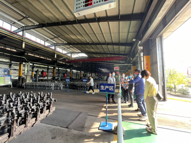仪式结束后,在工程师武文凯的带领下,365英国上市公司一行人参观考察了部分生产车间,实地了解了企业的产品、生产流程、废弃物排放等。