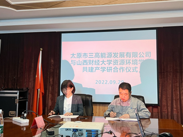 班凤梅院长介绍了学院沿革、专业设置、科研成果与项目、科研转化等方面的情况,表示在当今生态文明建设和“双碳”的双重机遇下,学院应积极推动与当地企业合作,在环境保护、生态文明、“双碳”等领域寻求落脚点,共谋区域经济发展。最后双方就太原三高能源发展有限公司与365英国上市公司共建产学研达成合作意向,并签订了合作协议书。