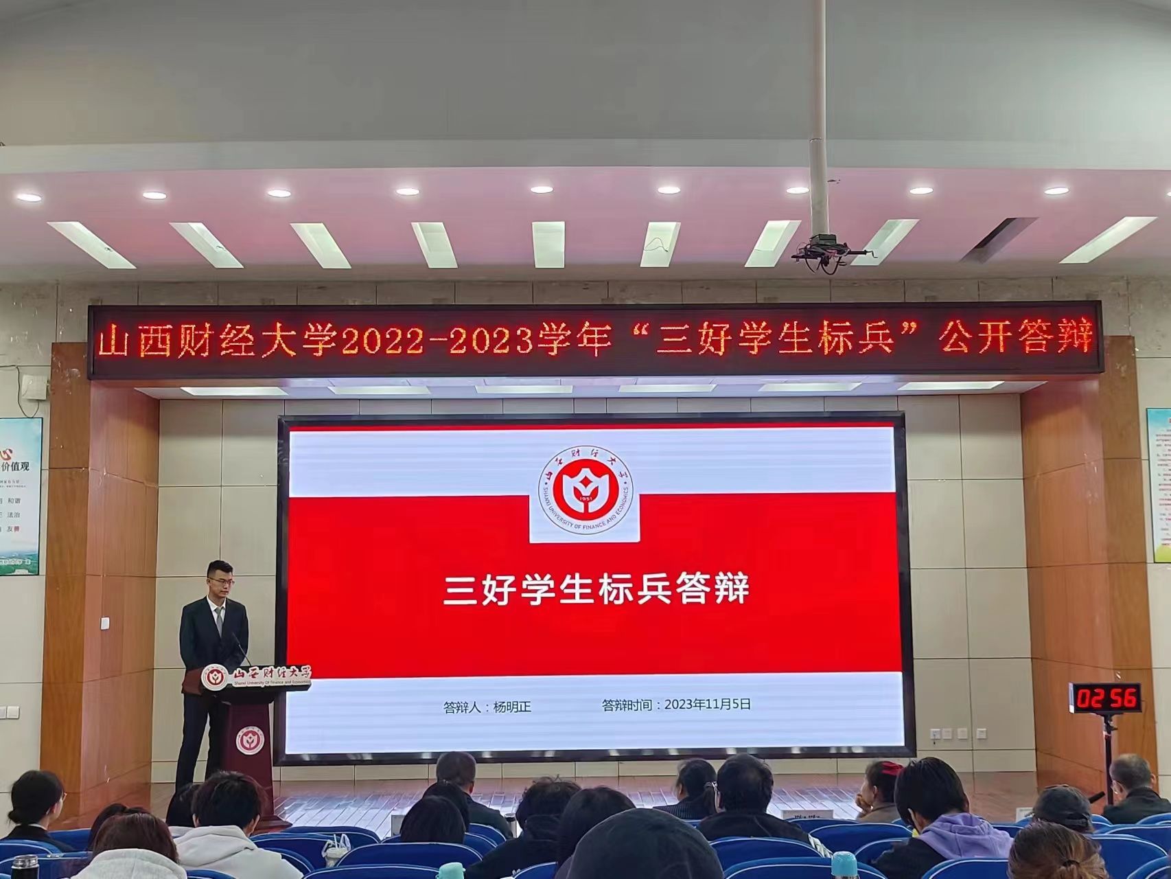 2023年11月4日、5日,山西财经大学2022-2023学年“三好学生标兵”公开答辩,在敏行楼301阶梯教室举行。经过激烈角逐,我院2021级自然地理与资源环境专业杨明正同学凭借优异的学习成绩、优秀的竞赛成果和丰富的社会实践经历荣获2022-2023学年校“三好学生标兵”荣誉称号,全校获此殊荣的三好学生有37名,我院只有一名。