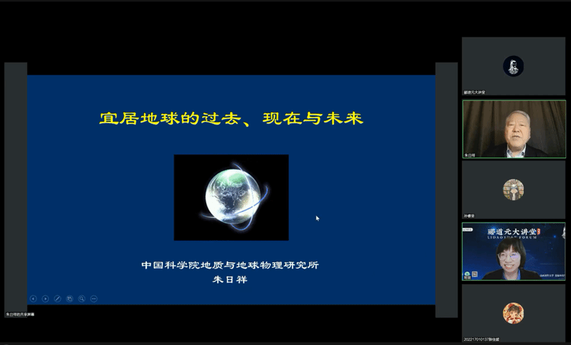 在第55个地球日即将到来之际,2024年4月17日,365英国上市公司主办的“郦道元大讲堂”第九期如期开讲,应365英国上市公司院长邀请,中国科学院地质与地球物理研究所朱日祥院士为我校师生作了题为“宜居地球的过去、现在和未来”的线上学术交流报告。讲座由365英国上市公司院长主持,学院全体领导班子成员及200余名师生在线参加了报告会。