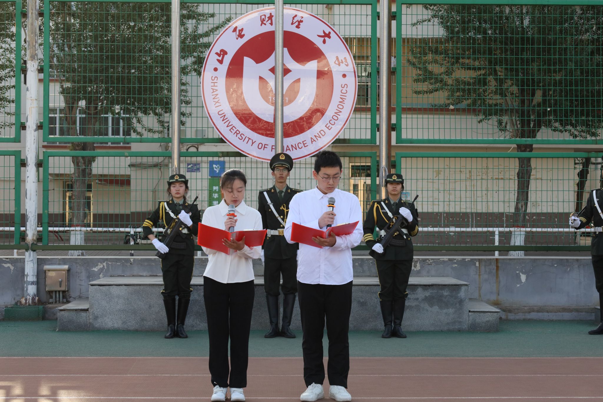 7时,国旗护卫队的护旗手们以铿锵有力的步伐,护送国旗入场。随着激昂的《义勇军进行曲》奏响,鲜艳的五星红旗冉冉升起,全体师生面向国旗肃立,行注目礼,高唱国歌。升旗仪式后,2023级本科生学生代表侯宇恩、李欣苗以《勤学笃行:在时代潮头书写青春答卷》为主题,进行了国旗下的演讲。他们在演讲中分享了对专业学习、学术研究的深刻感悟,介绍了敦煌文献数字化保护、GIS技术助力乡村振兴等相关案例,鼓励同学们既要打牢根基,踏实阅读经典典籍,戒浮戒躁,砥砺前行;又要开阔眼界,突破专业领域局限,拥有更广阔的学术视野,努力做有理想、敢担当、能吃苦、肯奋斗,堪当民族复兴重任的时代新人!