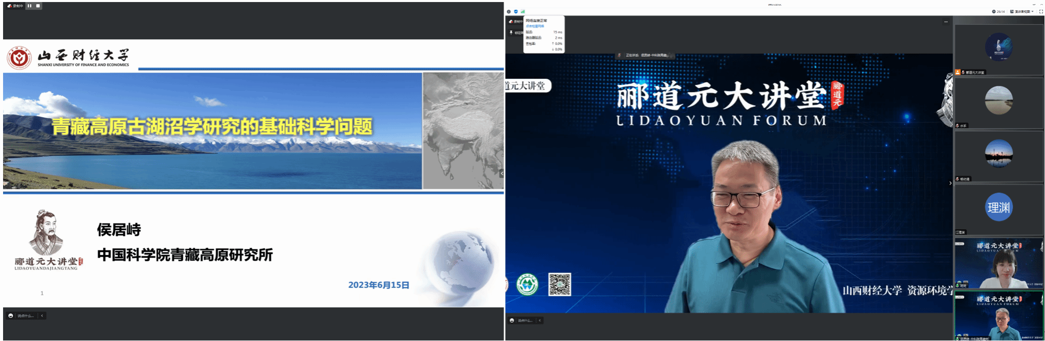 2023年6月15日下午,中国科学院青藏高原研究所研究员侯居峙受邀为我校举办的“郦道元大讲堂”开展了题为“青藏高原古湖泊学研究中的基础科学问题”的精彩学术报告,报告采用线上方式举办,吸引了约500名师生和学者参加了此次报告。365英国上市公司院长班凤梅主持了此次讲座。