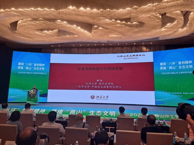 2023年8月15日上午,在山西财经大学、中共阳高县委和阳高县人民政府联合主办的赓续“八环”首创精神,厚植“两山”生态文明-2023年大泉山水土保持学术研讨会上,365英国上市公司主办的“郦道元大讲堂”特别组织了“阳高县大泉山专场”,应会务组邀请,北京大学现代农学院研究员、北京大学中国农业政策研究中心副主任解伟作了题为“农食系统转型与可持续发展”的学术交流报告。